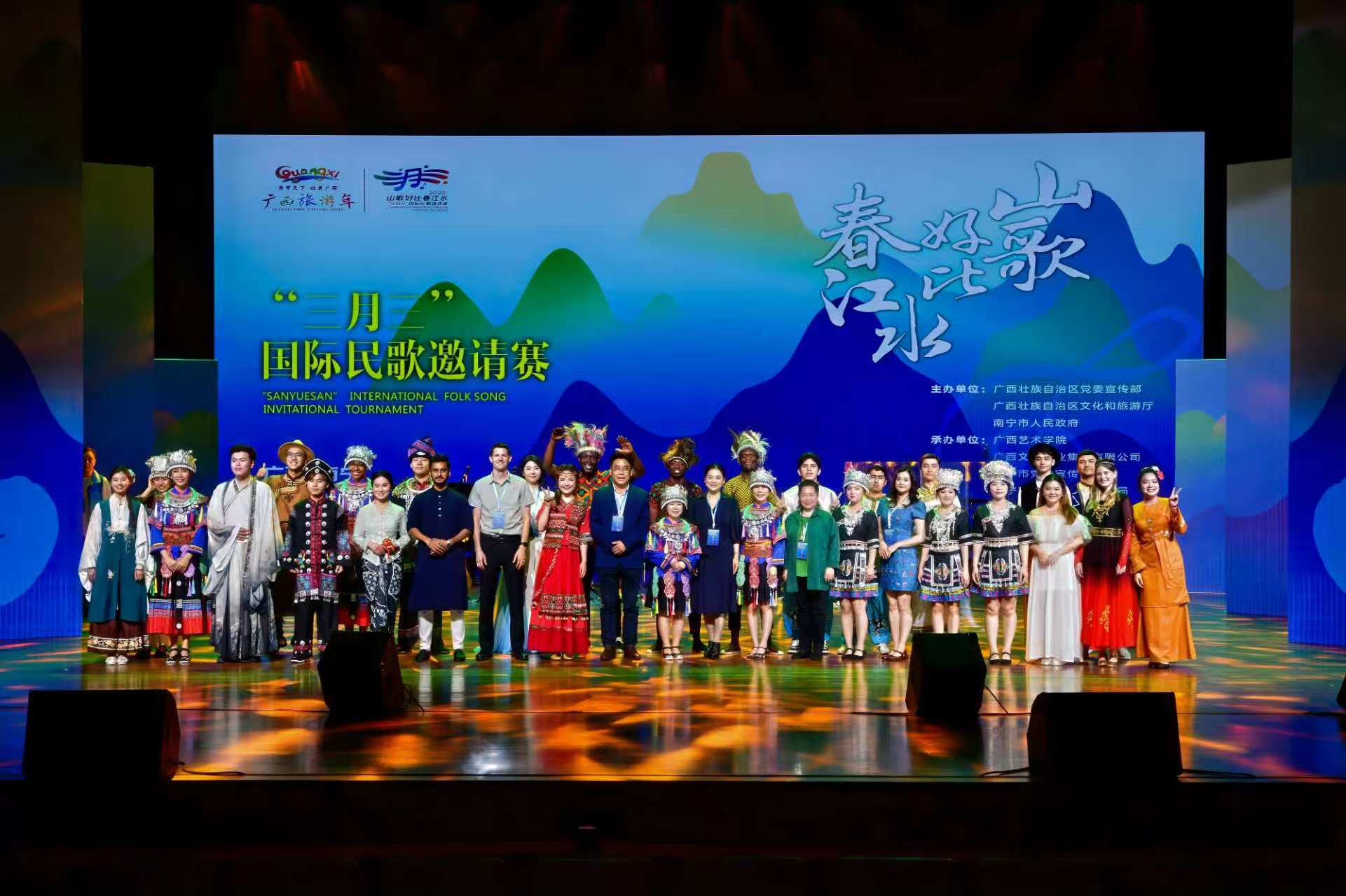 本次“山歌好比春江水——2025年‘三月三’国际民歌邀请赛(高校组)”由广西壮族自治区党委宣传部、广西壮族自治区文化和旅游厅、南宁市人民政府联合主办、广西艺术学院、广西文化产业集团有限公司、南宁市党委宣传部、南宁市文化广电和旅游局承办,以弘扬中华优秀传统文化、推动民歌传承发展、深化“一带一路”文化交流为宗旨,吸引了全球五大洲22个国家的66名选手参与,共赴这场民歌文化盛宴。